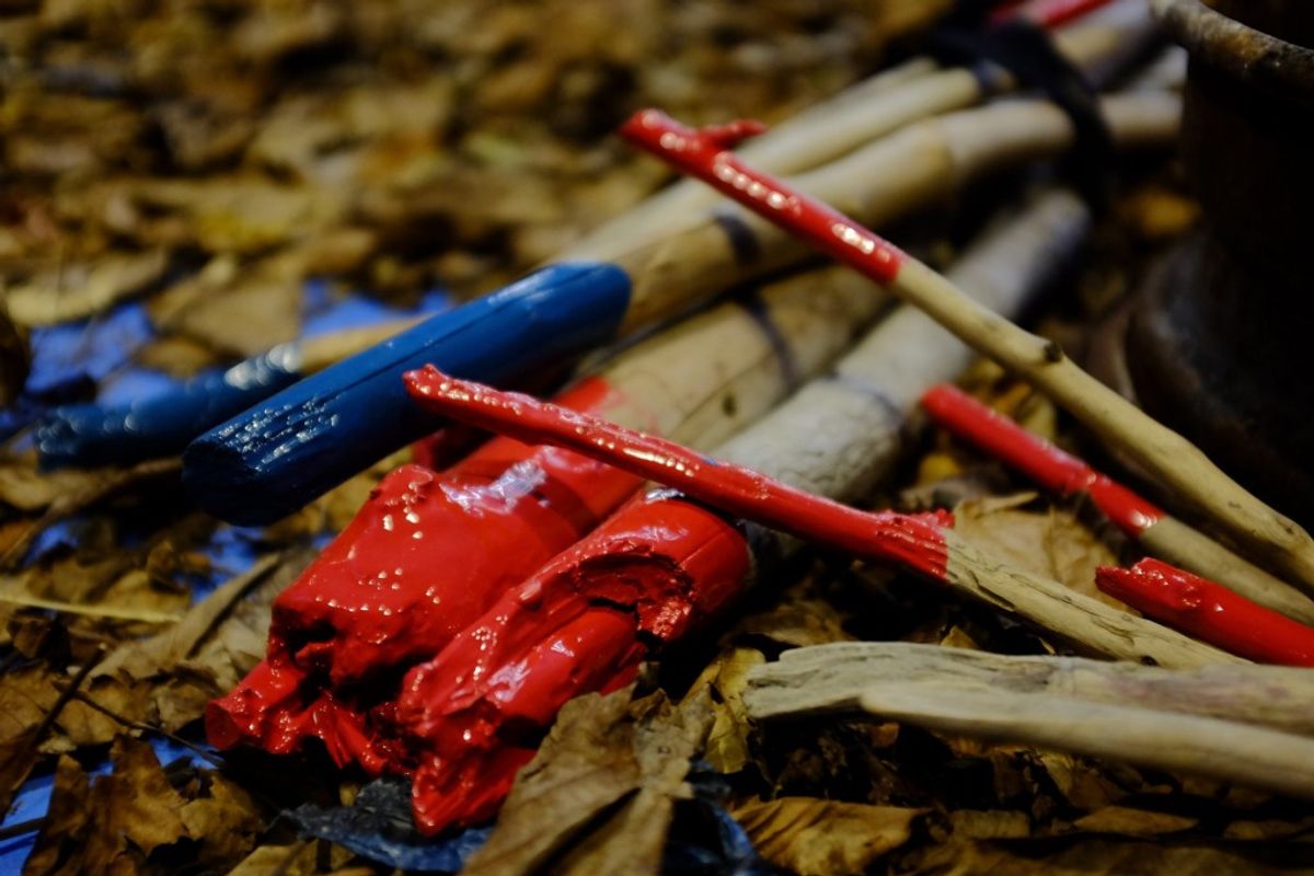 RECYCLED NEON LETTERS, LITTER, REFUGEE SURVIVAL TENTS. MIAO MÜNCHEN, 2015